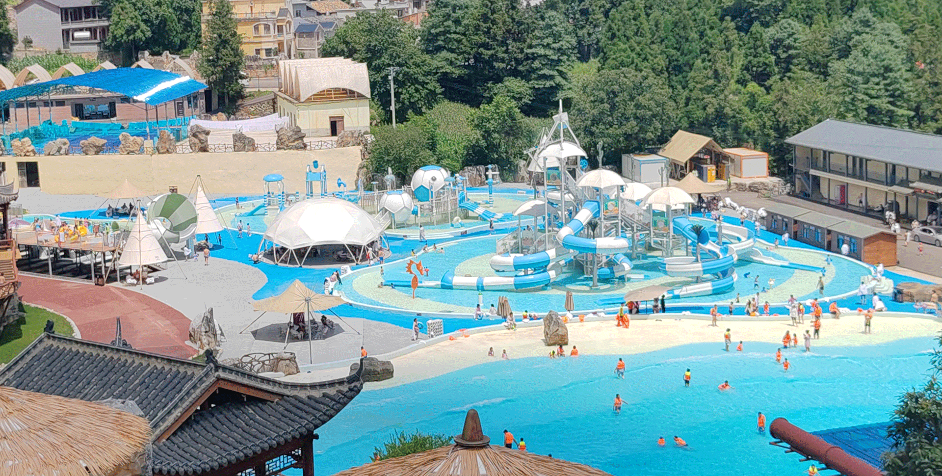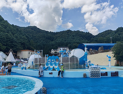 項(xiàng)目簡(jiǎn)介:海仙谷水上樂園,位于云南曲靖,占地面積15000平米,集旅游度假、溫泉泡池、餐飲于一體水上度假樂園。以浪漫的蒂芙尼藍(lán)作為主色調(diào),飽含幸福、美滿之意,讓人沉浸在戲水的快樂中。輔以沙子的黃色,與周圍的山形成鮮明對(duì)比,體現(xiàn)出中國人寄情山水的浪漫情懷。定制沙漠綠洲主題擋板,增添了一抹童趣。根據(jù)不同年齡的需求,分了兒童歡樂區(qū)和成人游玩區(qū)。八組不同的戲水設(shè)施,刺激程度各不相同,適合全年齡段游客,水屋水寨、沖天滑梯、造浪池等,任君挑選,讓大人小孩在這里都唔那個(gè)找到屬于自己的游玩方式,享受美好的度假時(shí)光。
