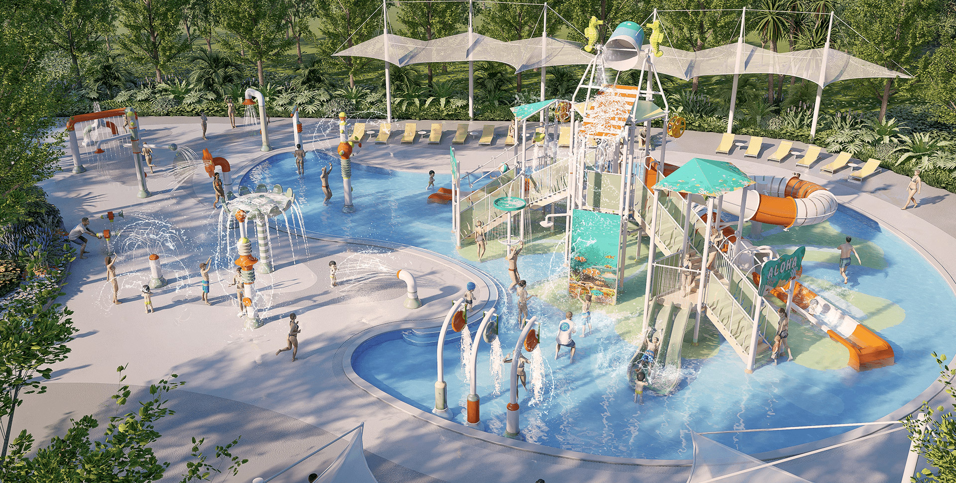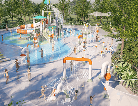 項(xiàng)目簡介:山東臨沂鶴鳴灣水上樂園坐落于沂蒙山景區(qū),由牧童集團(tuán)匠心打造,包含室內(nèi)外兩大戲水空間,總面積920㎡。室內(nèi)兒童戲水區(qū)以典雅氛圍與小水寨結(jié)合,呵護(hù)低齡兒童安全嬉水;室外則以活力橙色主題水寨與旱噴廣場為主,營造歡動互補(bǔ)的沉浸式體驗(yàn)。牧童專注大型水樂園一站式服務(wù),將自然、安全與趣味深度融合,為您呈現(xiàn)全齡共樂的戲水新境界。
