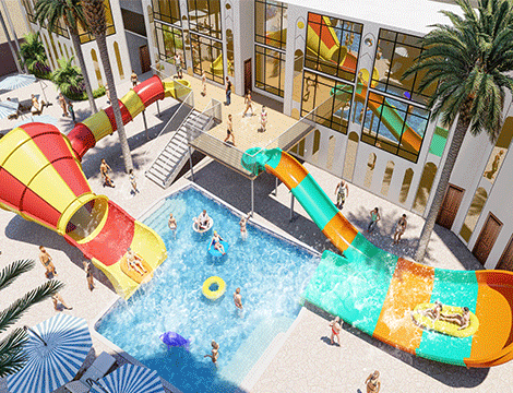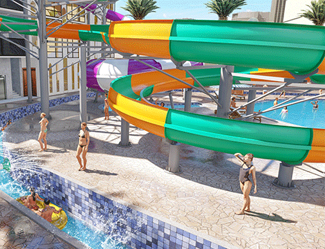 項(xiàng)目簡(jiǎn)介:在阿聯(lián)酋阿治曼,Clock Tower水上樂(lè)園二期重磅升級(jí)。我們聚焦青少年與成人客群,引入12米高彩虹滑梯,還有螺旋滑梯、太空盤(pán)滑梯、雙人皮筏滑梯、中型水寨等刺激水上游樂(lè)設(shè)備,打造全齡段水上娛樂(lè)新地標(biāo)。 項(xiàng)目以“家庭共享×分層體驗(yàn)”為核心,通過(guò)多層次立體布局,將驚險(xiǎn)滑行、離心旋轉(zhuǎn)與互動(dòng)戲水完美融合,讓每位游客都能在安全環(huán)境中盡享水上狂歡。