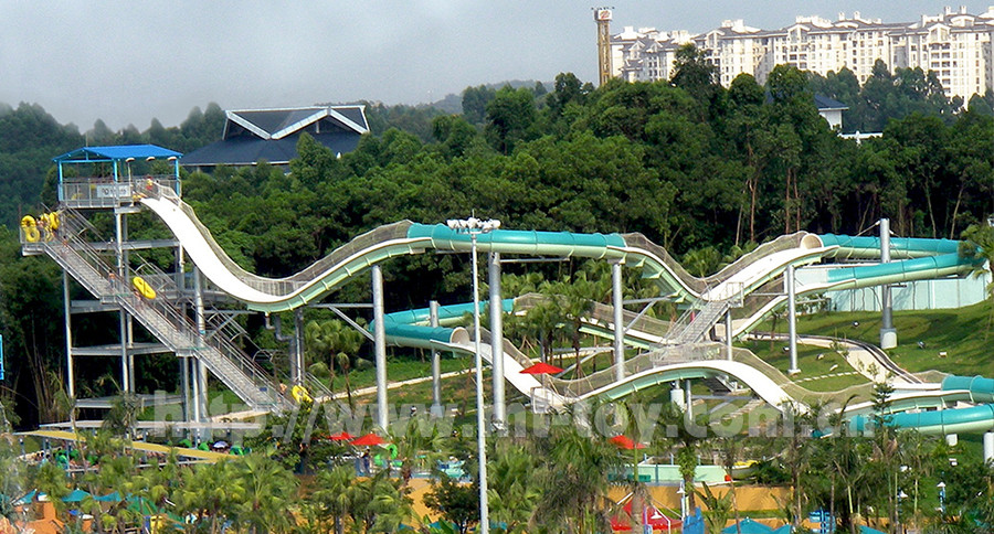 curve like a roller coaster, and ultimately the same as ordinary water slide glide into the pool.