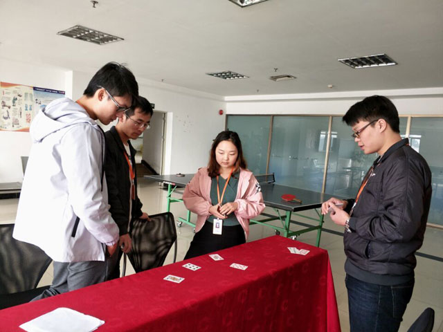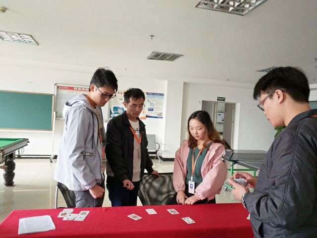 第一組的比賽一開始,何同事先聲奪人,幾秒就算出了答案,開了個好頭。慢慢的曾同事迎頭趕上,經(jīng)過半小時的比拼,最終以曾同事12張,何同事8張,張同事和田同事各4張的結(jié)果結(jié)束了本組的比賽。