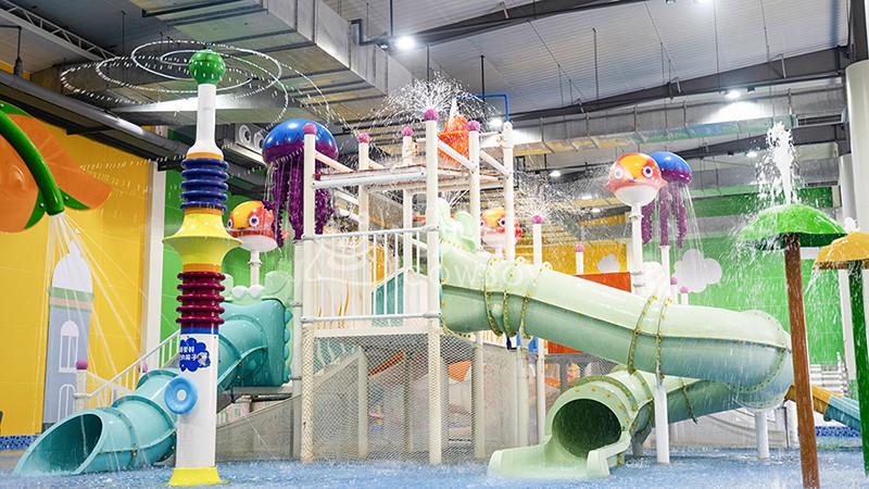 順著滑梯滑落,又置身于戲水小品的繽紛世界,面對(duì)明艷歡快的色彩,生動(dòng)有趣的卡通形象,孩童的天性得到完全的釋放,就連陪同家長(zhǎng)的童心也被喚醒,一同沉浸在水花噴灑的童話世界中,享受溫馨的親子世界。