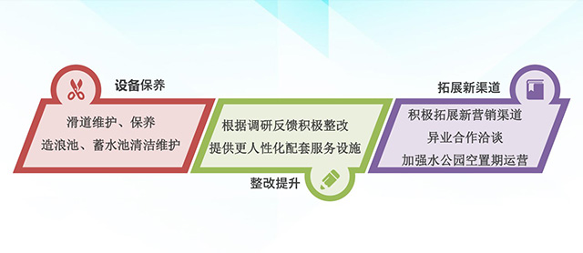 重視產(chǎn)品設(shè)施配套,除了游樂設(shè)備外,還要重視餐飲、儲物柜、洗手間、淋浴間、購物商店等綜合服務(wù)的配套設(shè)施。
